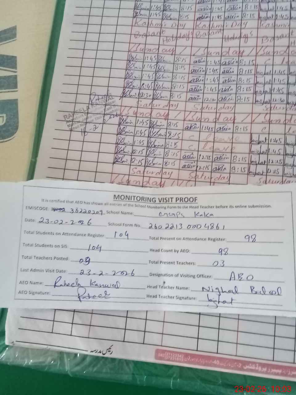 | Monitoring Date: 23-02-2026 | Start Time: 23-02-2026 09:31 AM | End Time: 23-02-2026 10:04 AM | Name of MEA: RA**** KA**** | |