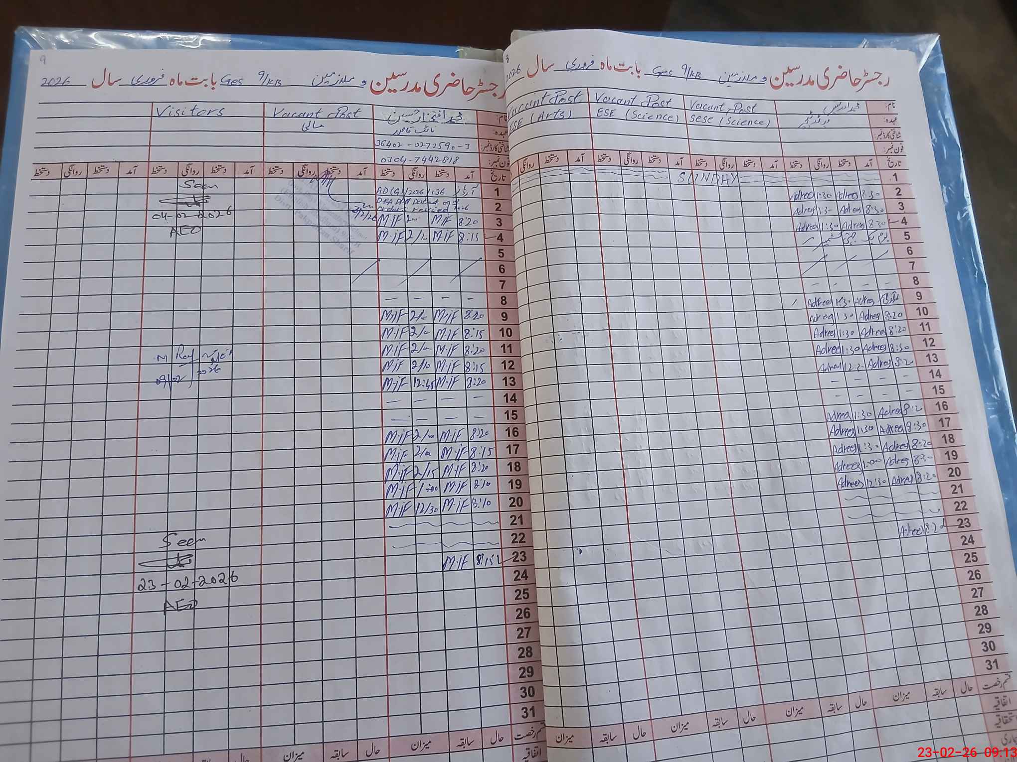 | Name: MU**** LA**** Designation: (School Headmaster's/Headmistress's) S.S.T.(GENERAL) Phone/Cell Number: 03**** |