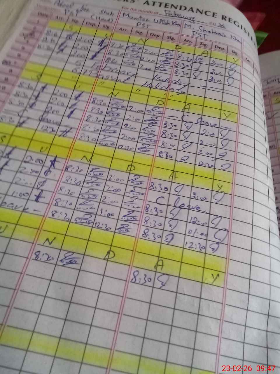| CNIC | Full Name | Designation | R/C | Absence During Last Calender Month |