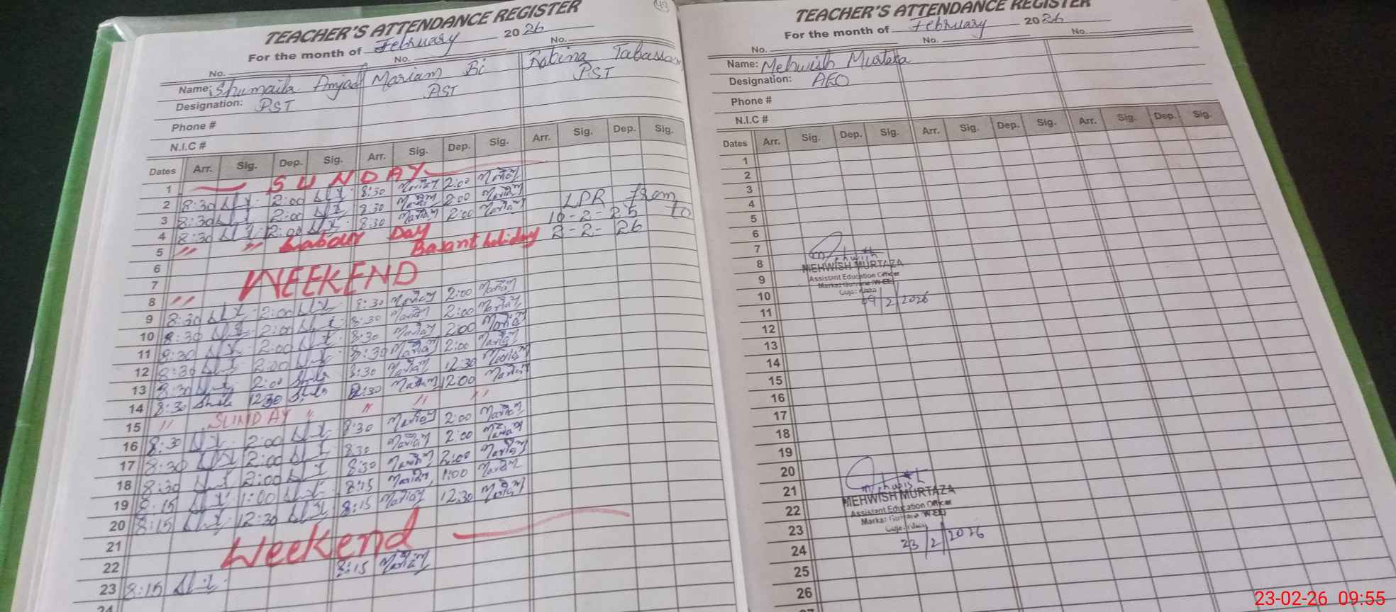 | Attendance Register | Head Teacher | MEA with School | Visit Proof |