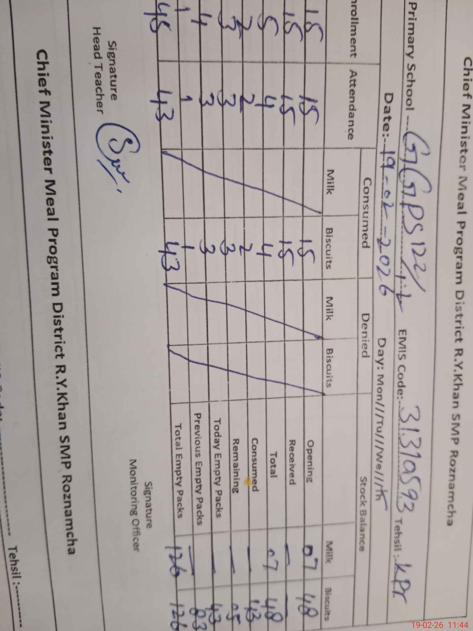 | District: RAHIMYAR KHAN | Tehsil: KHANPUR | Markaz: BAGH O BAHAR - FEMALE | Level: Primary | |