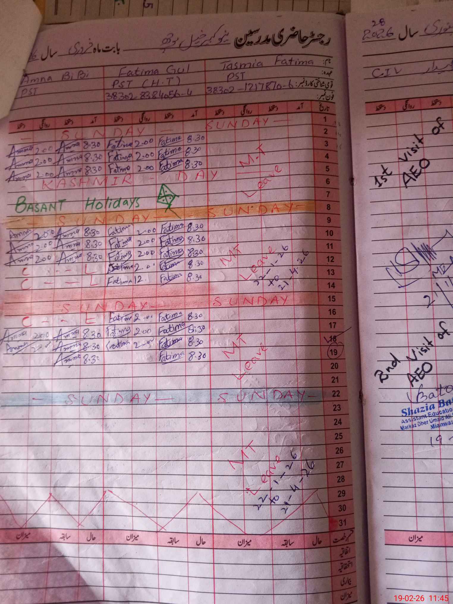 | Leave | Duty | Absent | Maternity | Medical | Ex- Pak |