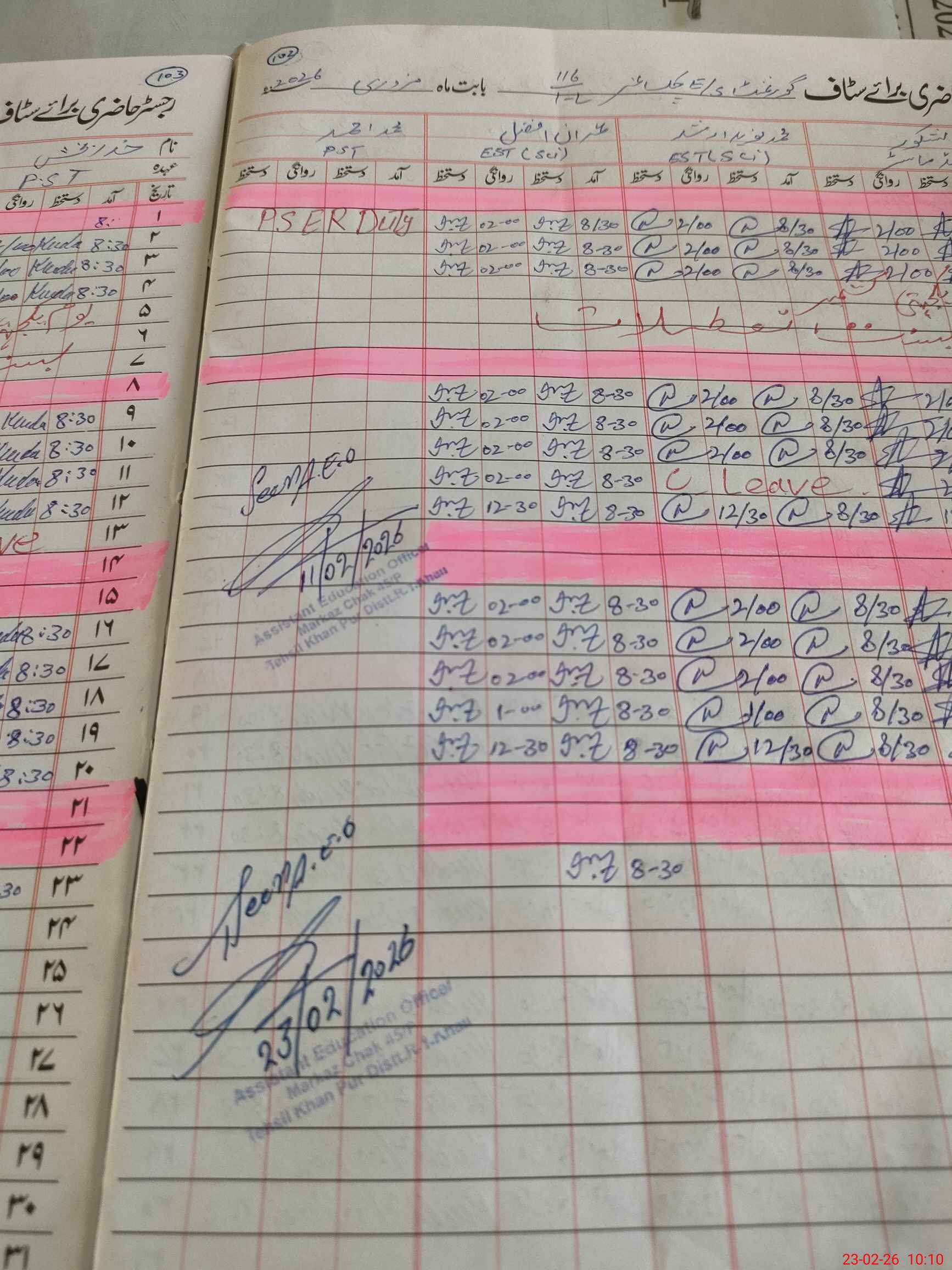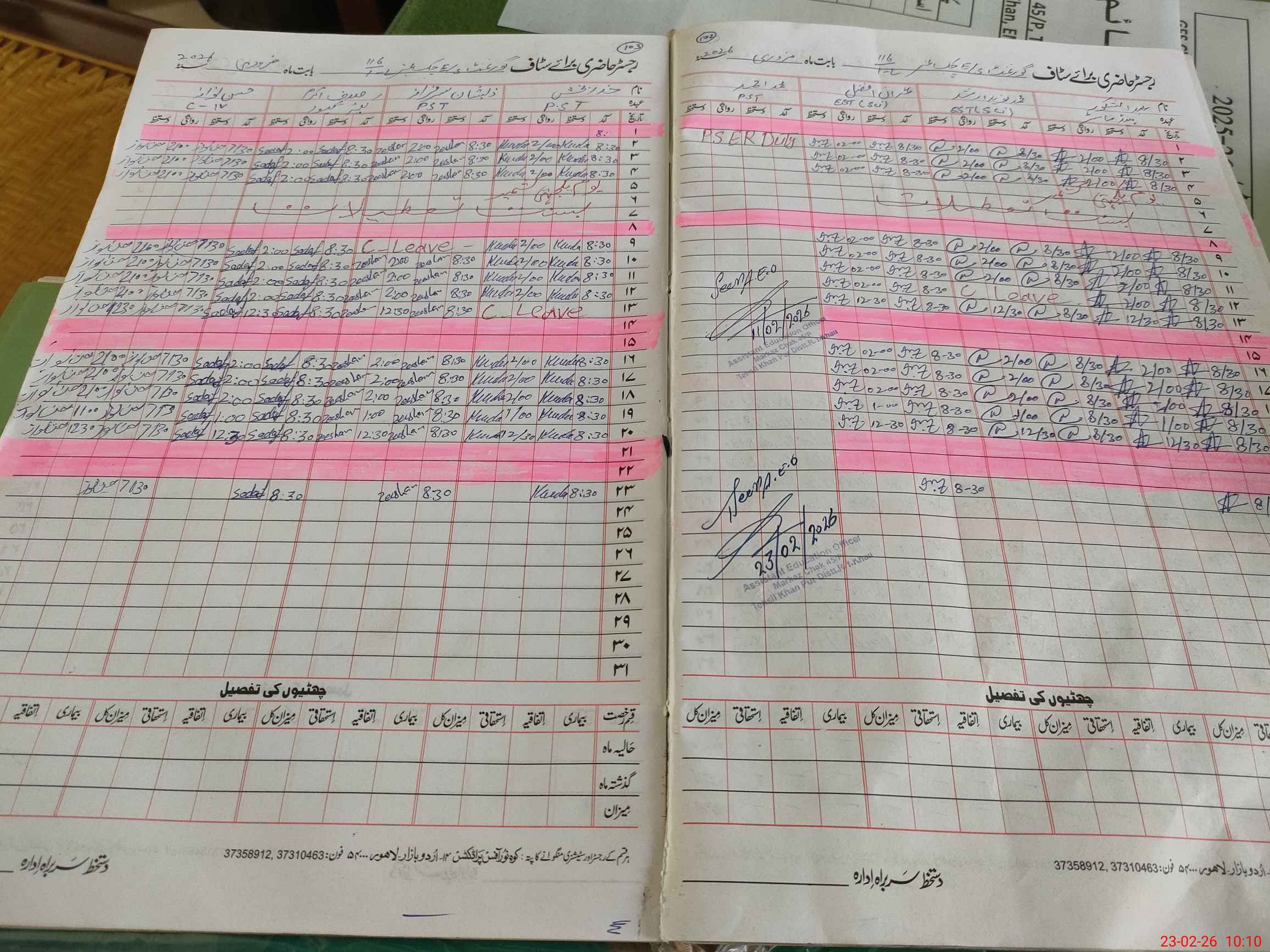 | CNIC | Full Name | Designation | R/C | Absence During Last Calender Month |