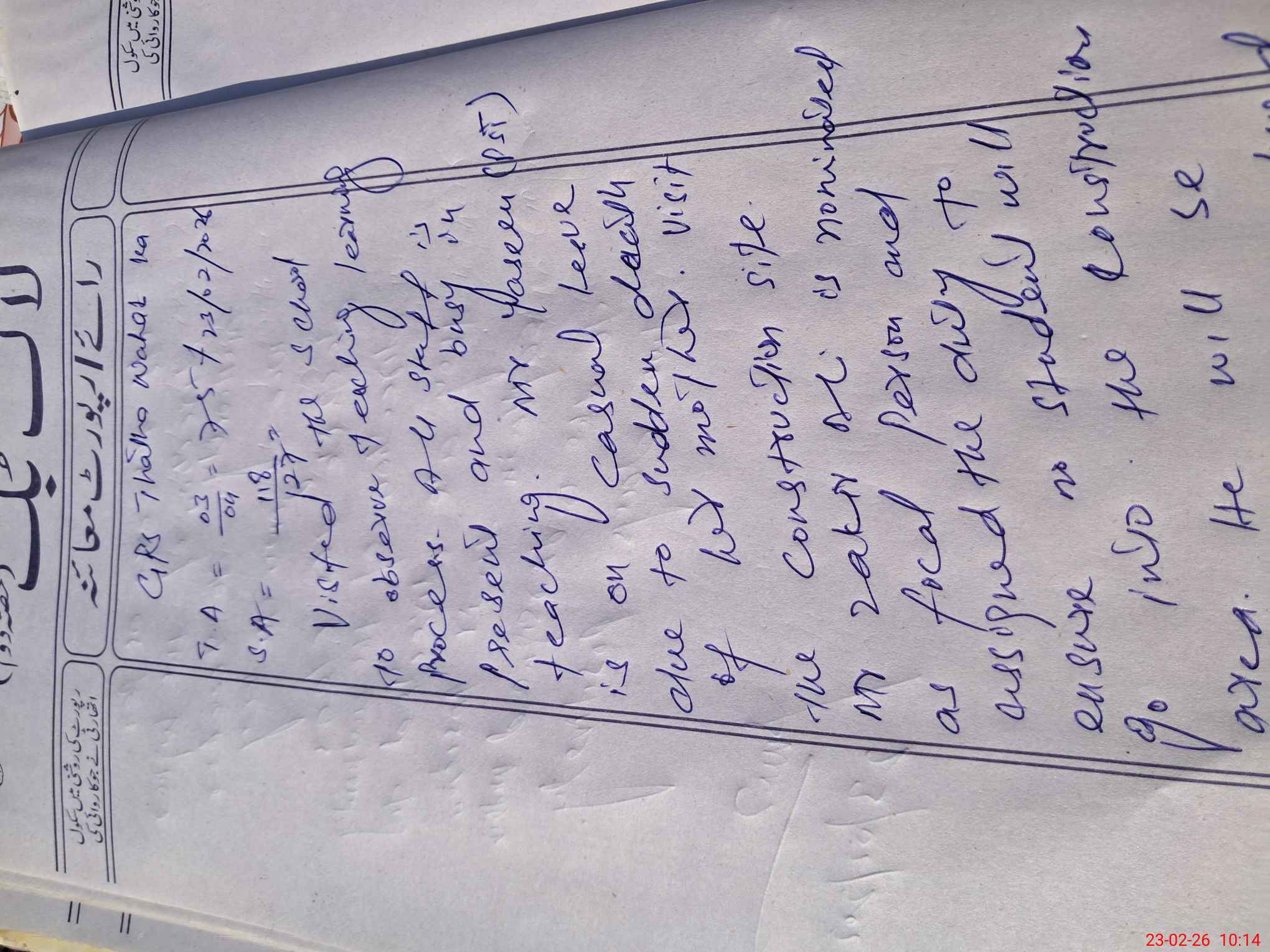 | Monitoring Date: 23-02-2026 | Start Time: 23-02-2026 09:50 AM | End Time: 23-02-2026 10:16 AM | Name of MEA: Sa**** Ul**** | |