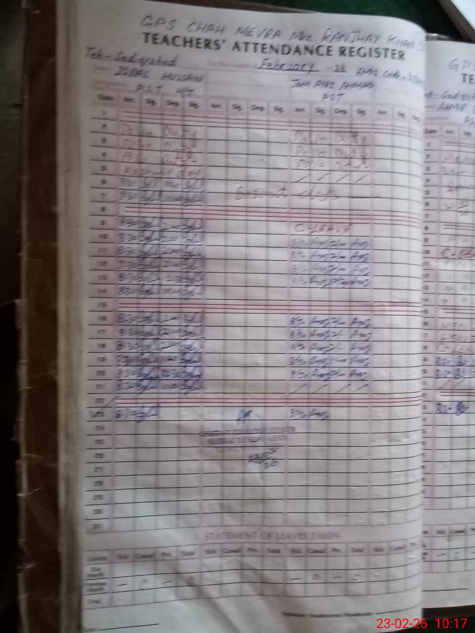 | Attendance Register | Head Teacher | MEA with School | Visit Proof |