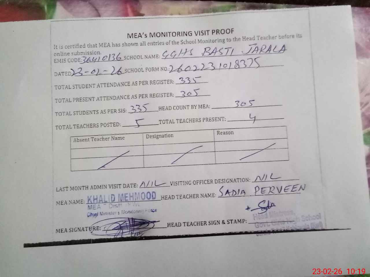 | EMIS Code: 36410136 | Name of School: GGHS BASTI JARALA ABDUL HAKIM | |||