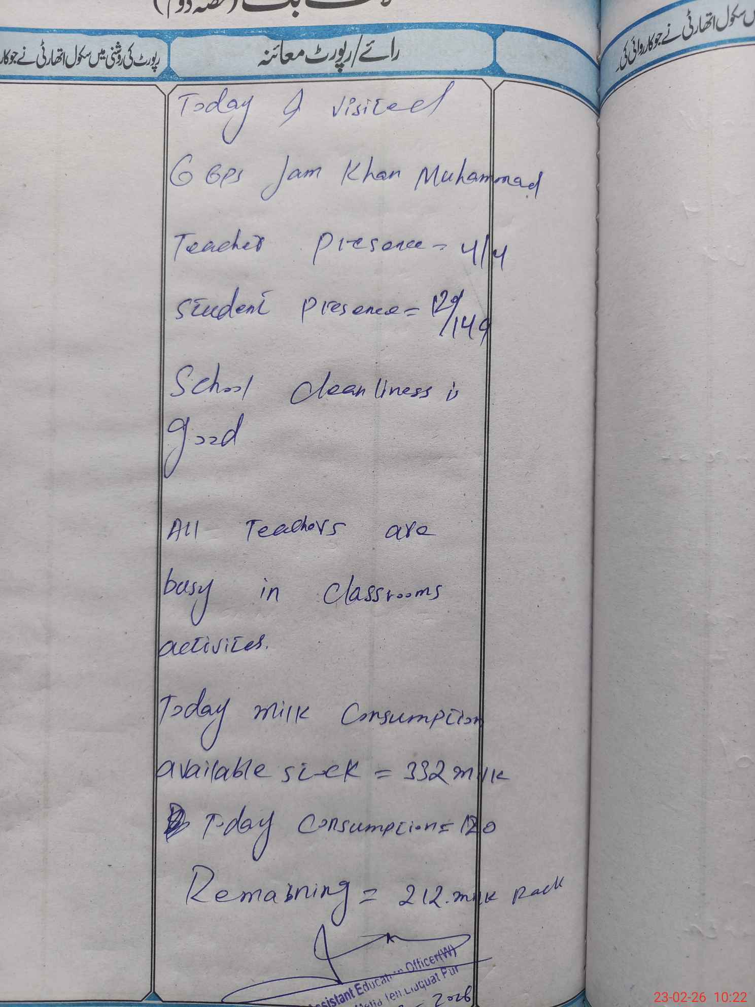 | Certified that this School was Inspected by the Undersigned MEA/DMO Today and the Information Stated Above is as Per Record. | |||||