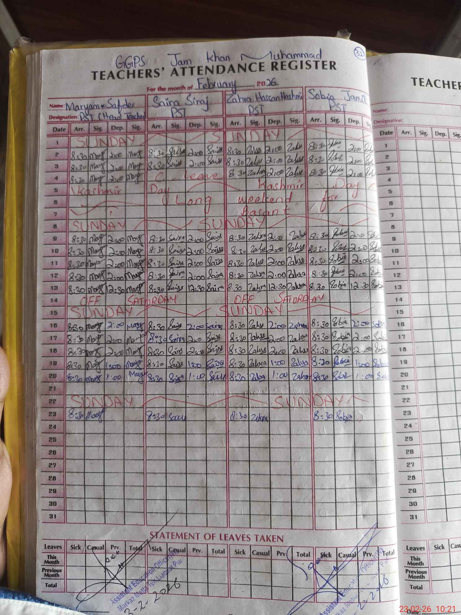 | Name: Ma**** Sa**** Designation: (School Headmaster's/Headmistress's) PST Phone/Cell Number: 03**** |