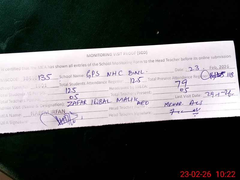| EMIS Code: 38410135 | Name of School: GPS NOOR HAYAT COLONY | |||