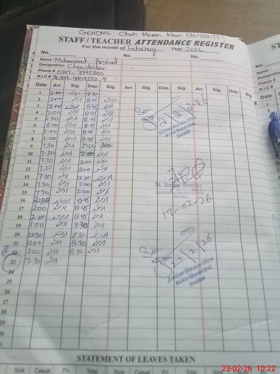 | Name: Ro**** Sh**** Designation: (School Headmaster's/Headmistress's) SST Phone/Cell Number: 03**** |