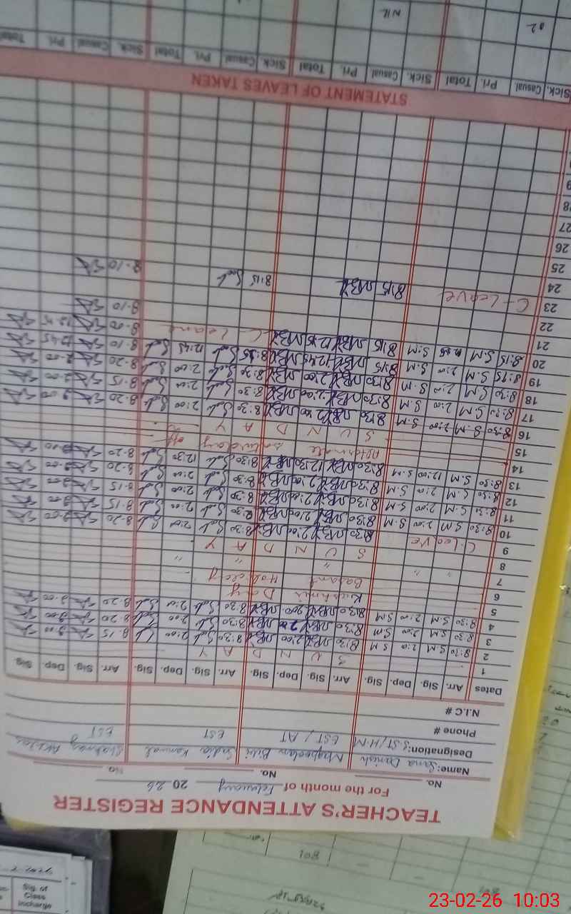 | 35**** | Sa**** Da**** | SST Science | Regular | 2 | 0 | 0 | 0 | 0 | 0 | 0 | 0 | 2 | Casual |