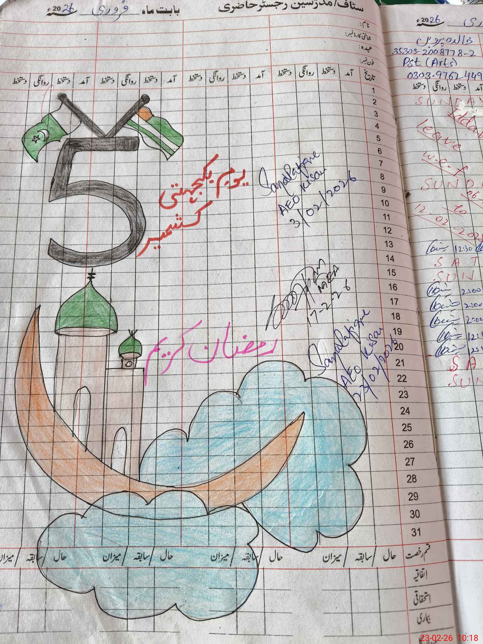 | Name: KI**** Ss**** Designation: (School Headmaster's/Headmistress's) ESE ARTS Phone/Cell Number: 03**** |