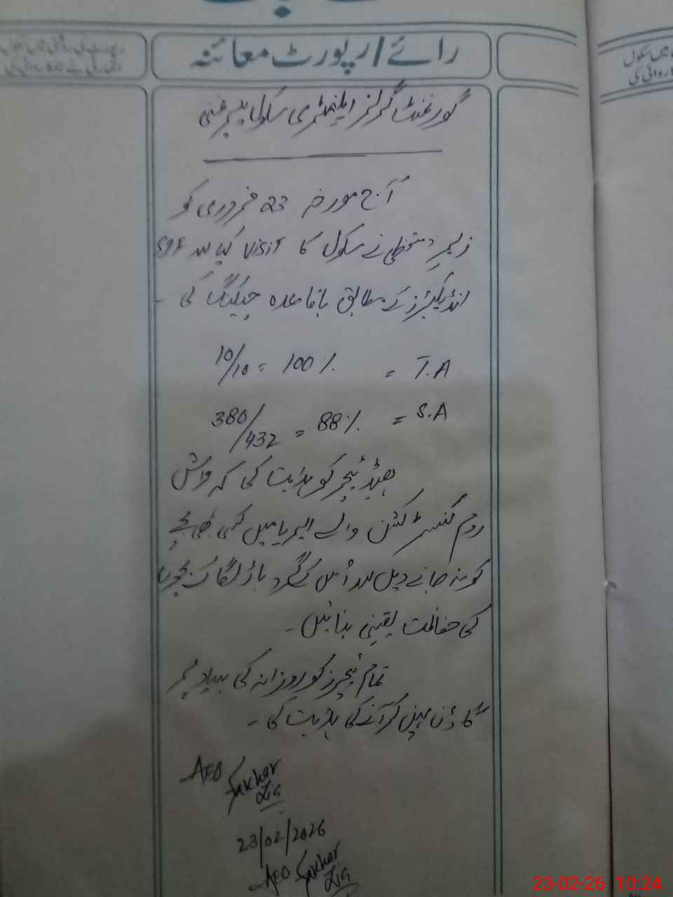 | Certified that this School was Inspected by the Undersigned MEA/DMO Today and the Information Stated Above is as Per Record. | |||||