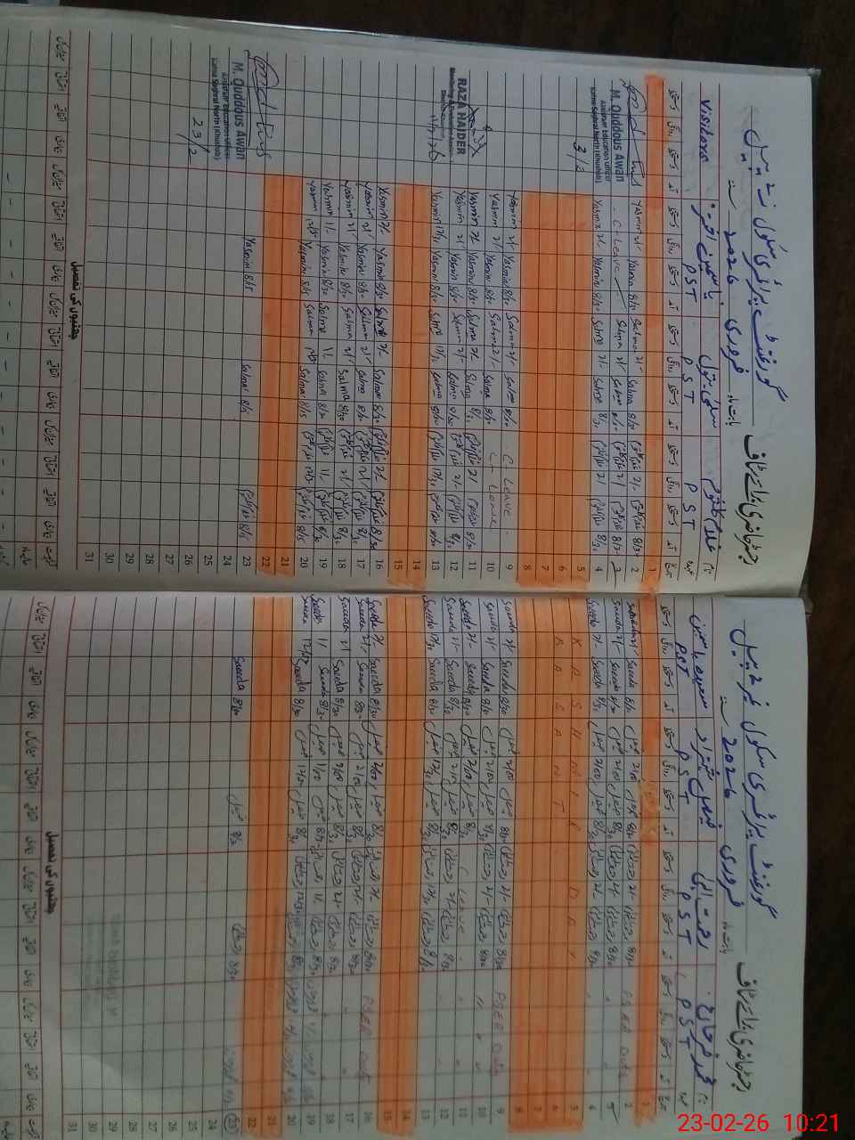 | CNIC | Full Name | Designation | R/C | Absence During Last Calender Month |