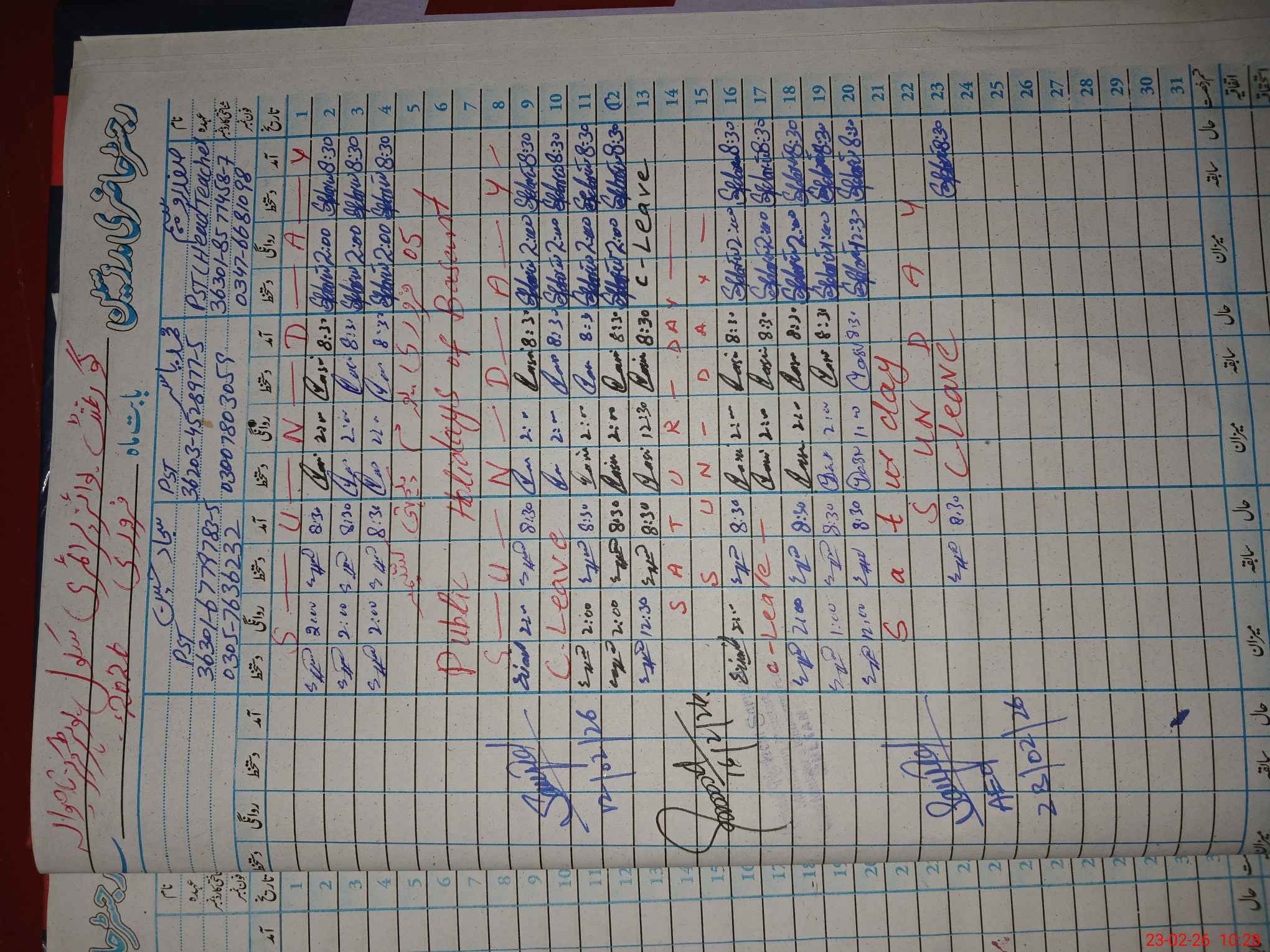 | Name: Sa**** Wa**** Designation: (School Headmaster's/Headmistress's) PST Phone/Cell Number: 03**** |
