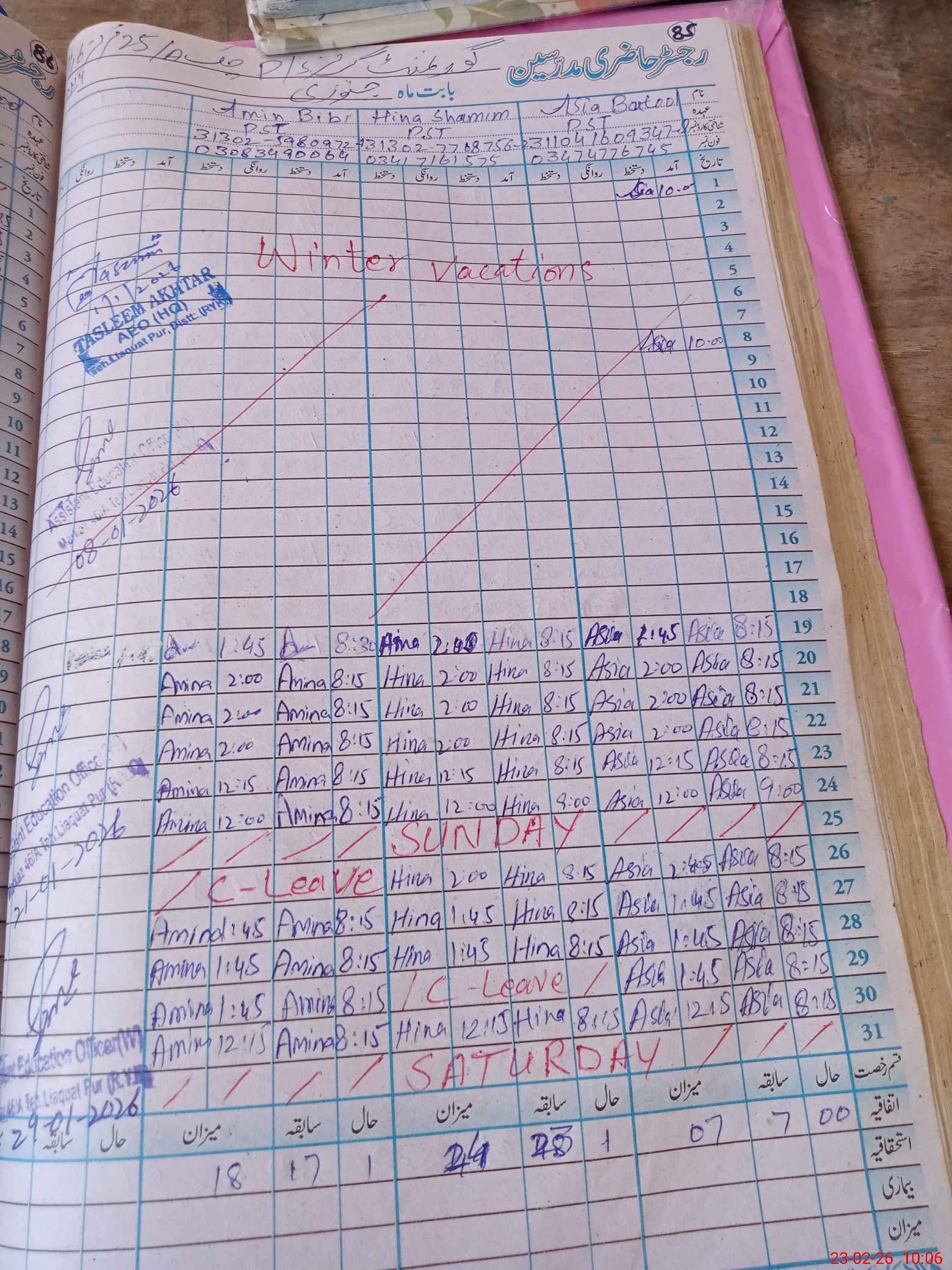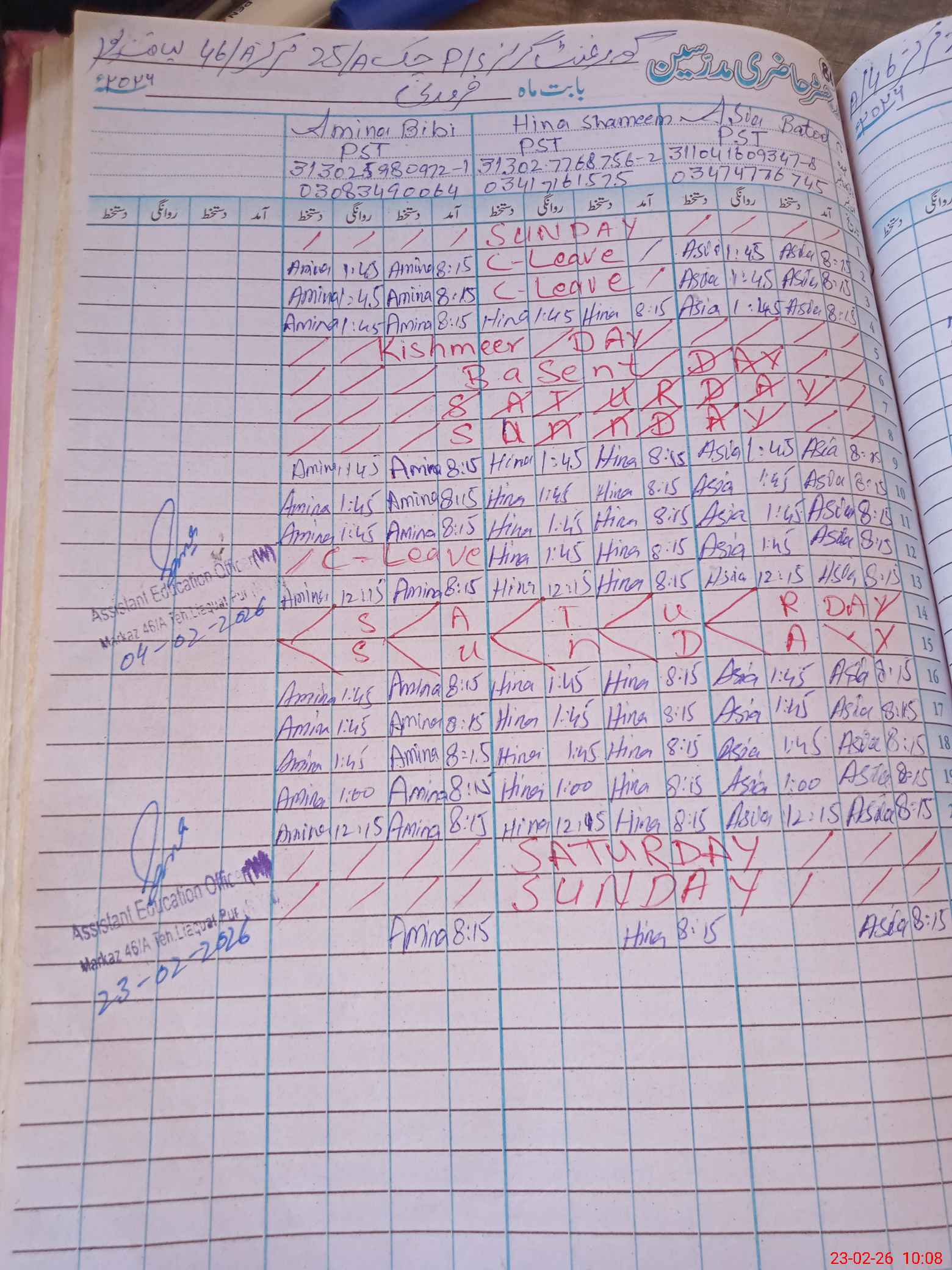 | Name: AS**** BA**** Designation: (School Headmaster's/Headmistress's) PST Phone/Cell Number: 03**** |