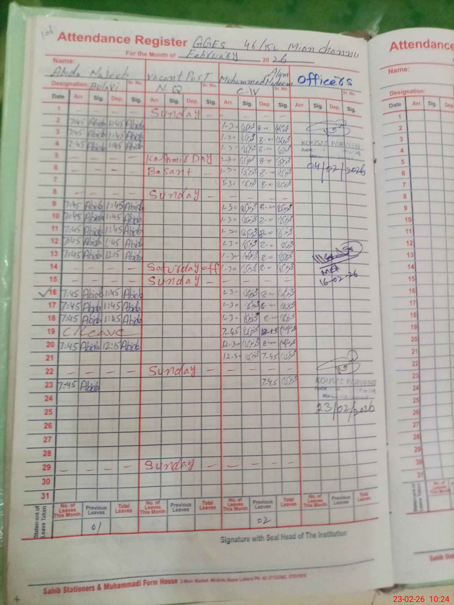 | 36**** | Sh**** Pa**** | PST Arts | Regular | 0 | 0 | 0 | 0 | 0 | 0 | 0 | 0 | 0 | Exam Duty |