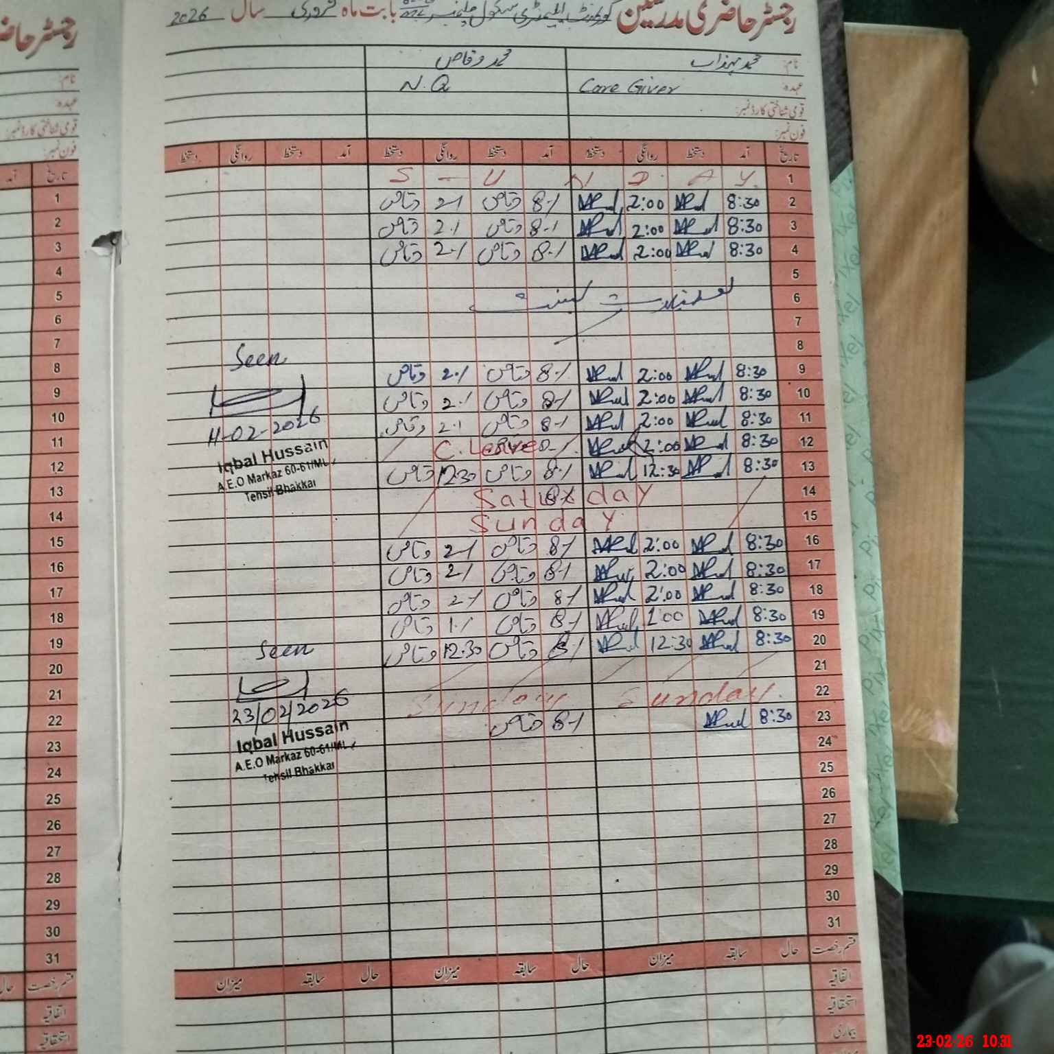 | Attendance Register | Head Teacher | MEA with School | Visit Proof |