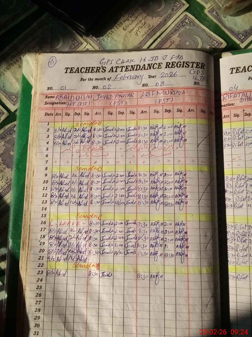 | CNIC | Full Name | Designation | R/C | Absence During Last Calender Month |
