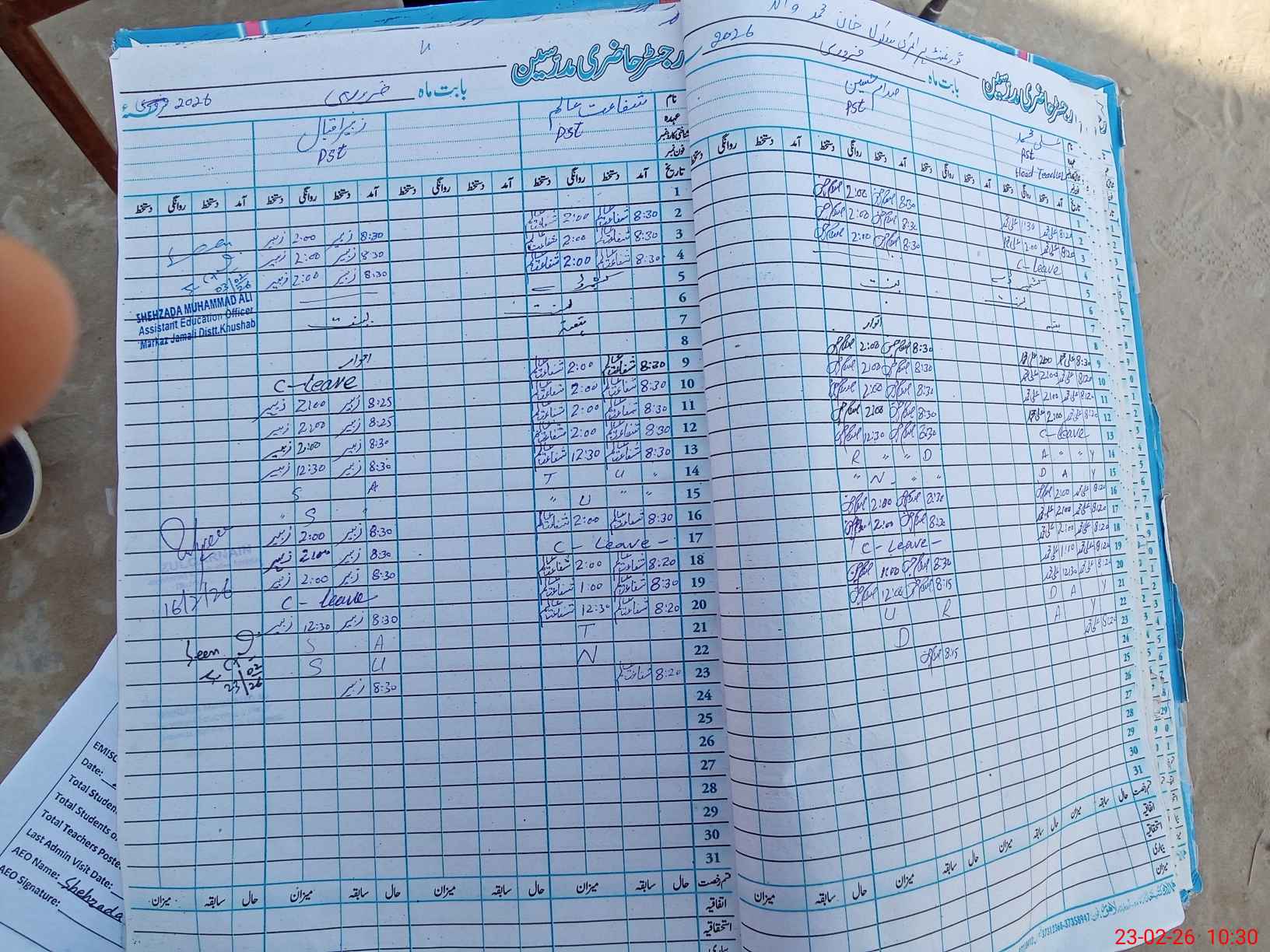 | Name: Al**** Mu**** Designation: (School Headmaster's/Headmistress's) PST Phone/Cell Number: 03**** |