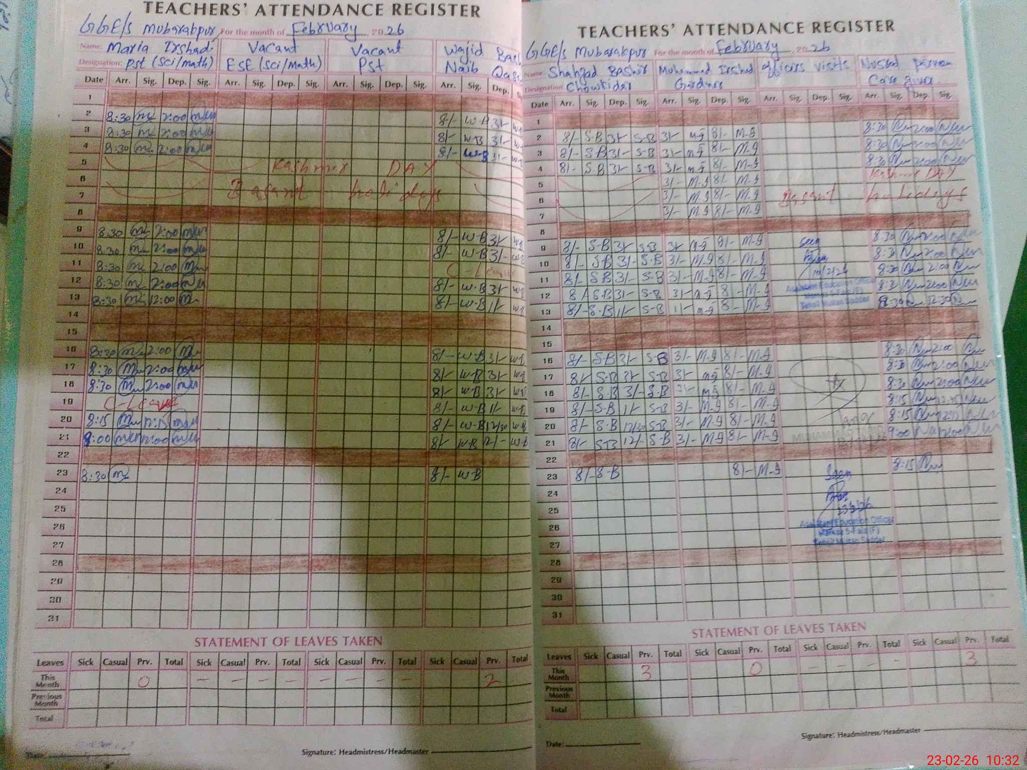 | 36**** | Bu**** Kh**** | PST Arts | Regular | 0 | 0 | 0 | 0 | 0 | 0 | 0 | 0 | 0 | Casual |