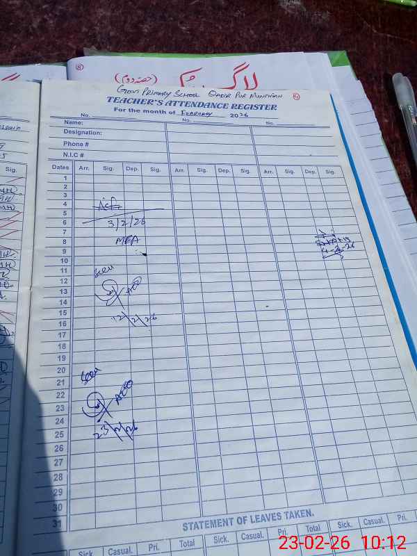 | Name: SH**** AH**** Designation: (School Headmaster's/Headmistress's) PST Phone/Cell Number: 03**** |