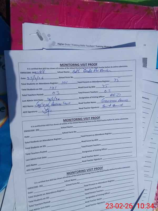 | Certified that this School was Inspected by the Undersigned MEA/DMO Today and the Information Stated Above is as Per Record. | |||||