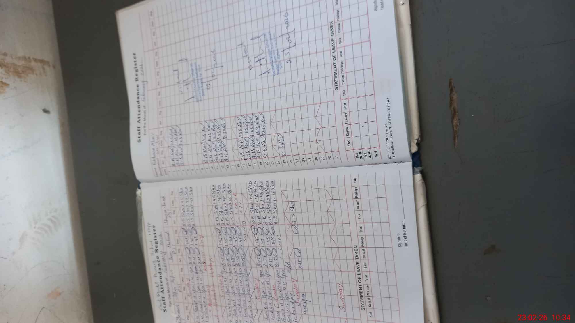 | Leave | Duty | Absent | Maternity | Medical | Ex- Pak |