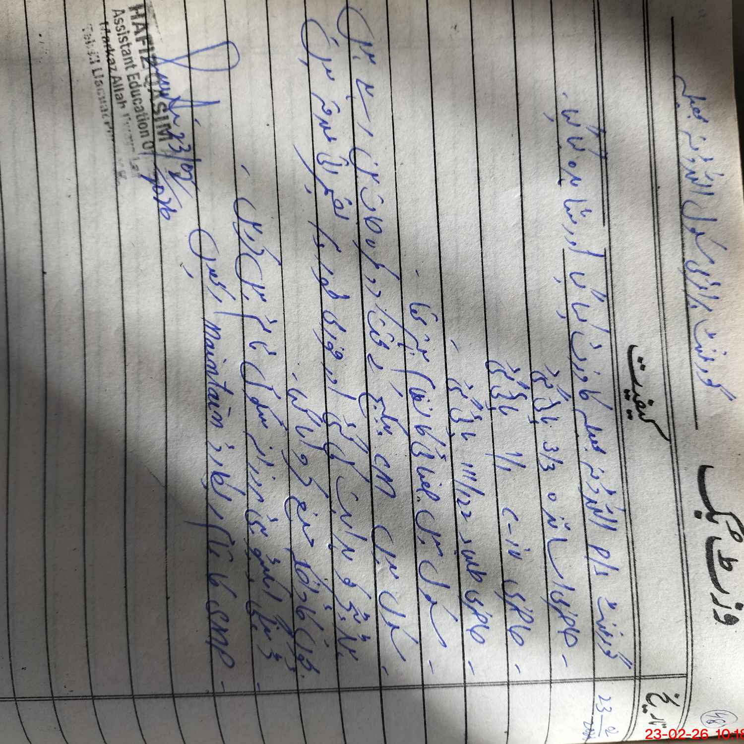 | Name: MU**** AS**** Designation: (School Headmaster's/Headmistress's) PST Phone/Cell Number: 03**** |