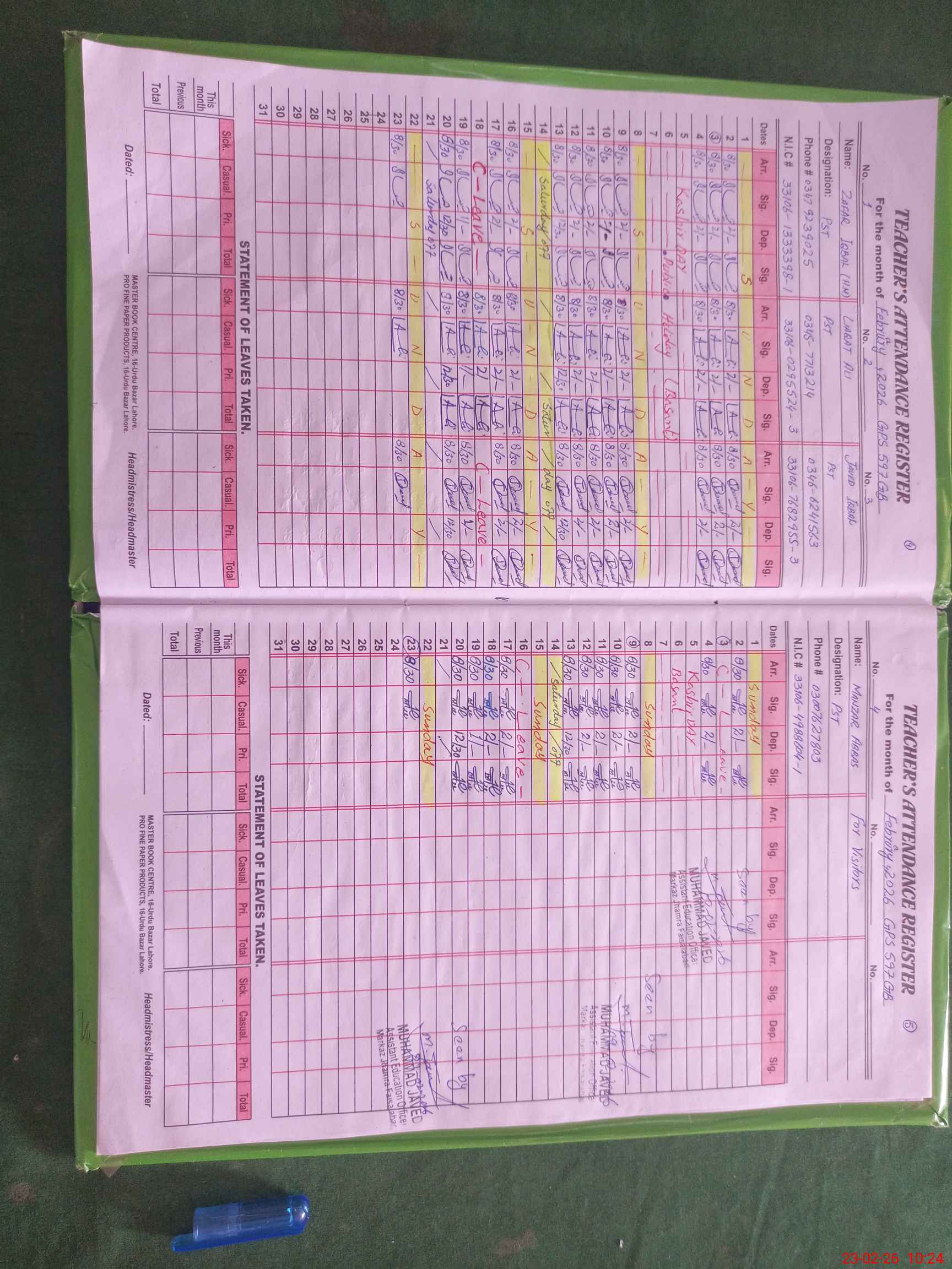 | Name: ZA**** IQ**** Designation: (School Headmaster's/Headmistress's) PST Phone/Cell Number: 03**** |