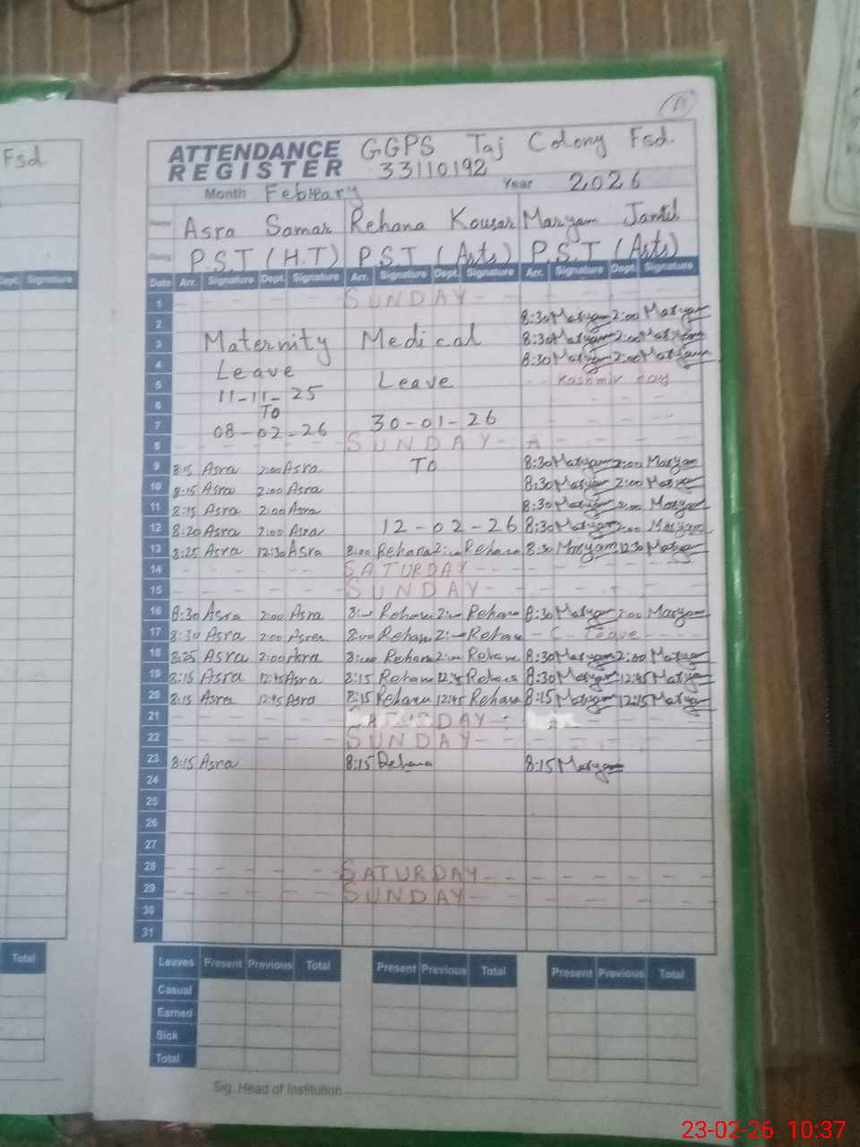 | EMIS Code: 33110192 | Name of School: GGPS TAJ COLONY FSD KOT AMIN DIN | |||
