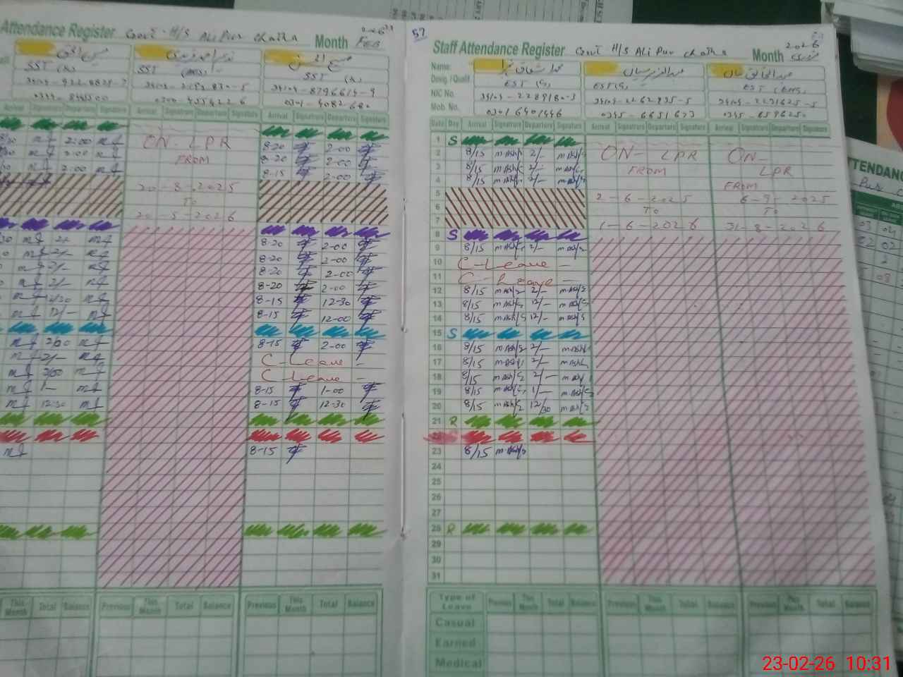| CNIC | Full Name | Designation | R/C | Absence During Last Calender Month |