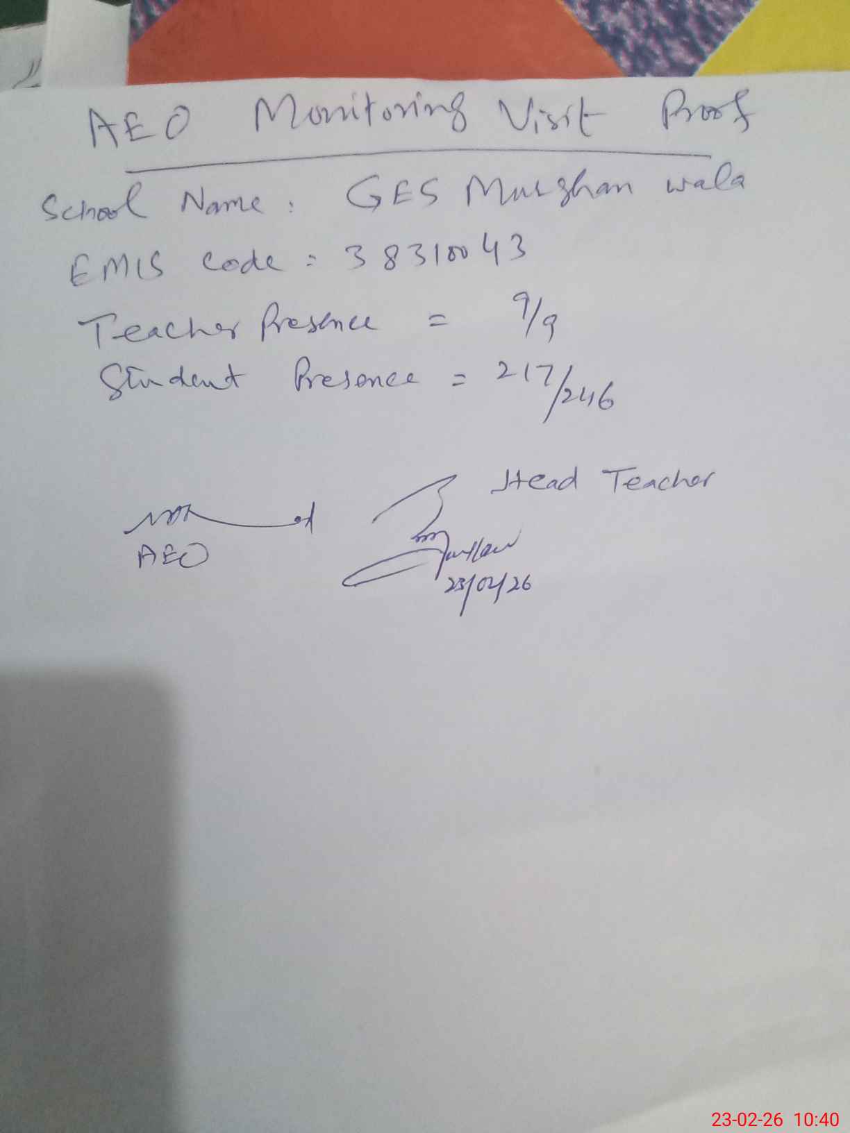 | EMIS Code: 38310043 | Name of School: GES MURGHAN WALA | |||