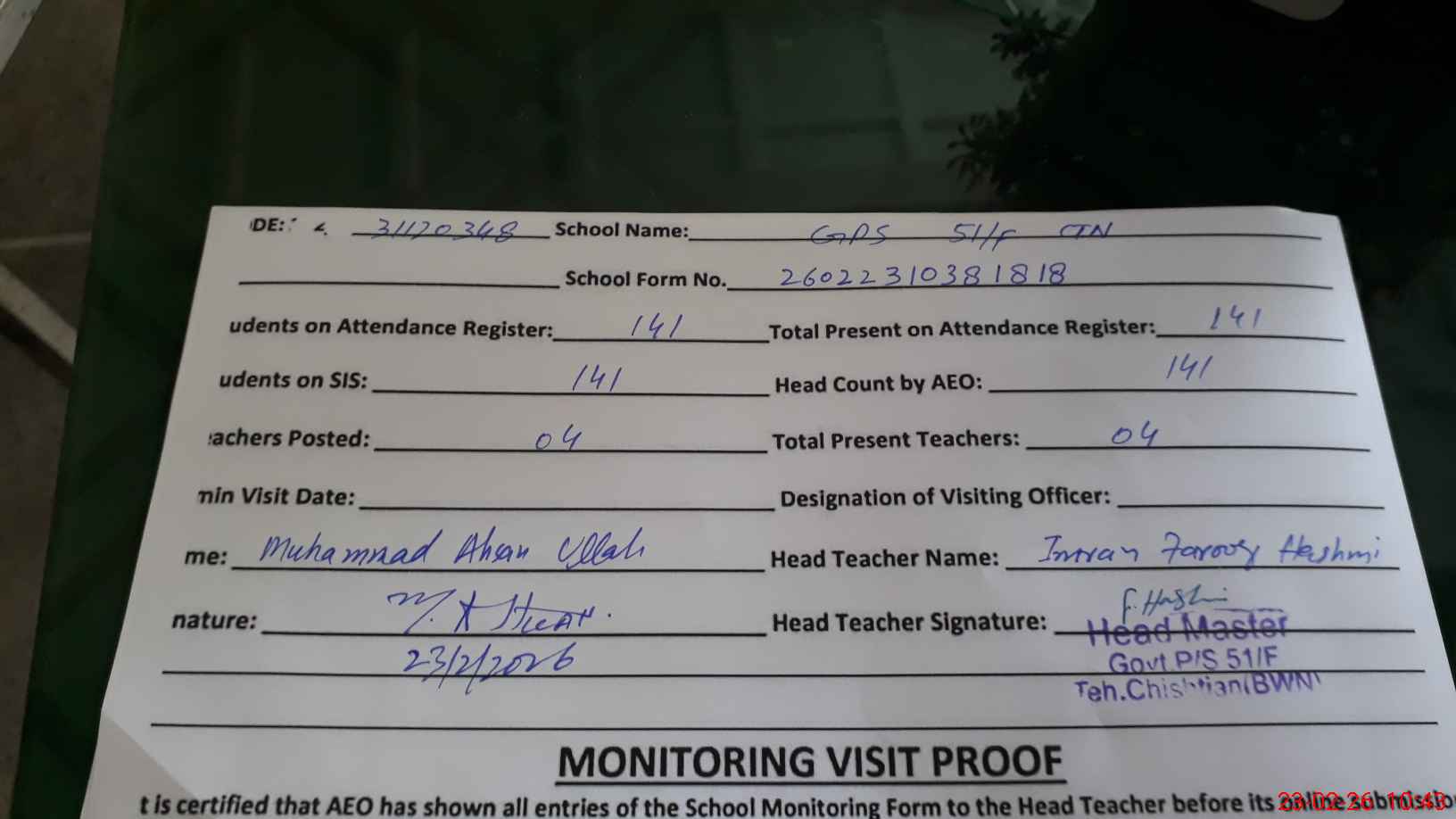 | Name: IM**** FA**** HA**** Designation: (School Headmaster's/Headmistress's) PST Phone/Cell Number: 03**** |