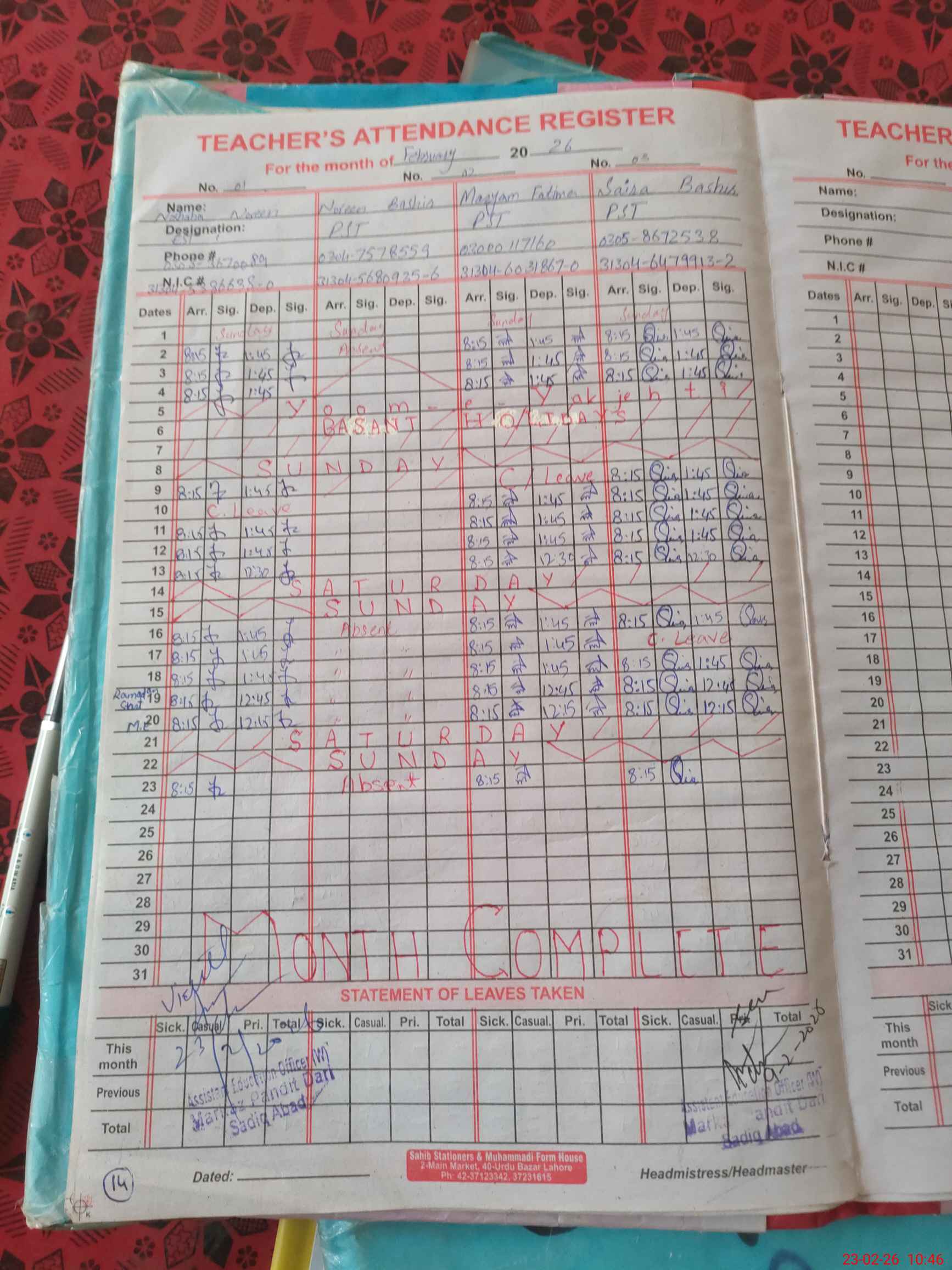 | 31**** | No**** Ba**** | ESE (Arts) | Contract | 0 | 0 | 0 | 0 | 0 | 0 | 0 | 0 | 0 | Absent (Un-Authorized) |