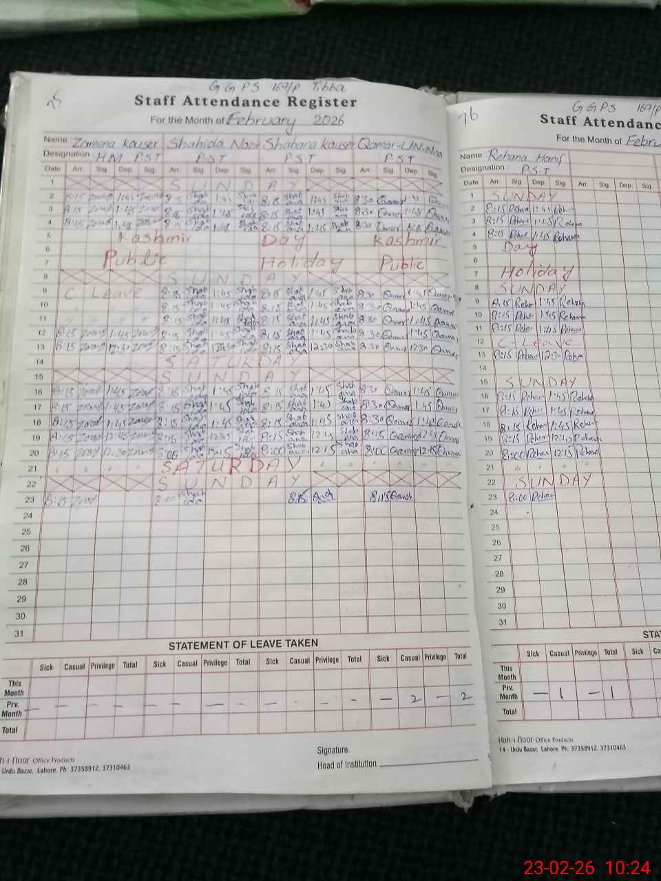 | Leave | Duty | Absent | Maternity | Medical | Ex- Pak |