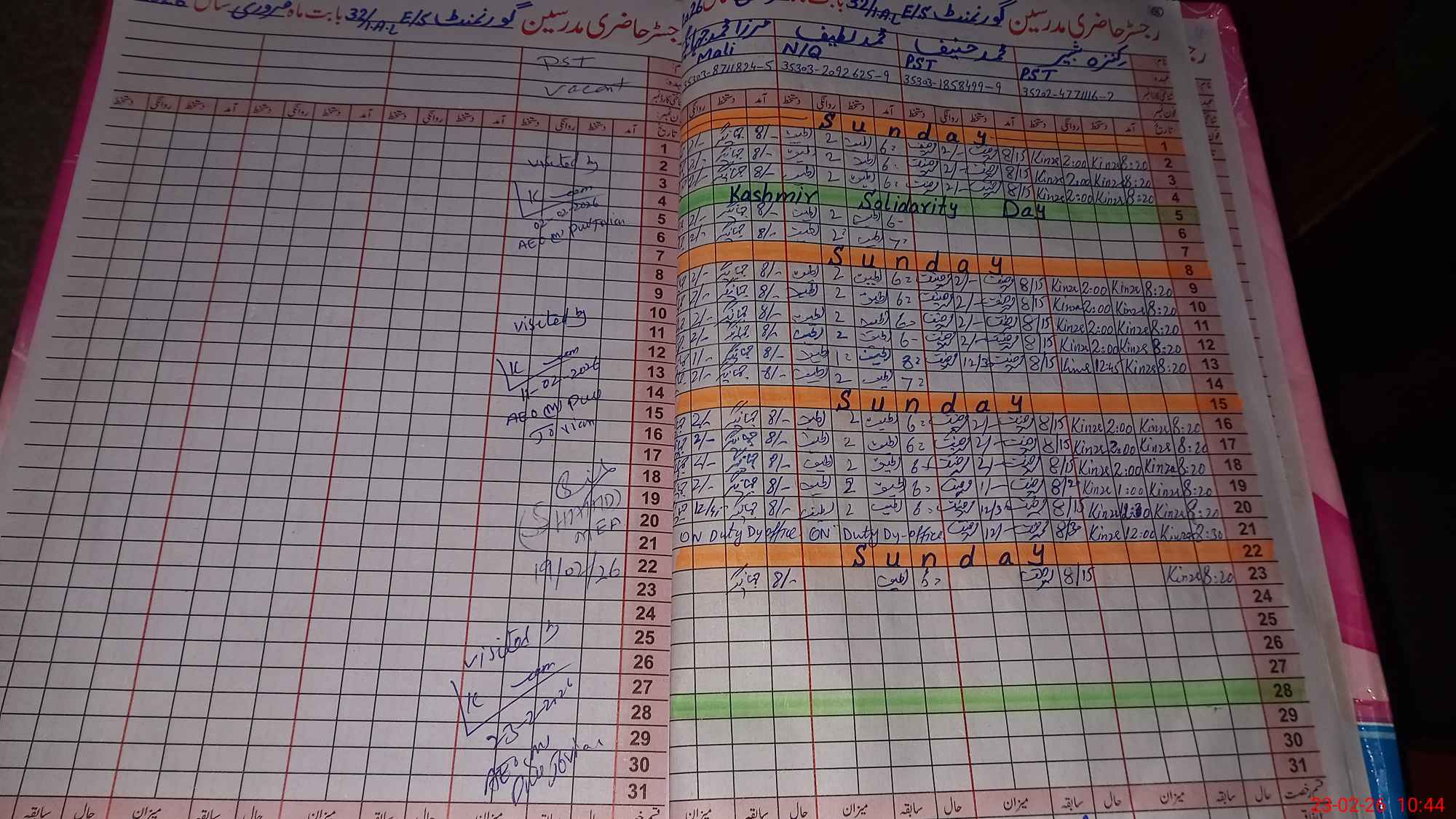 | Name: Kh**** Ah**** Designation: (School Headmaster's/Headmistress's) EST (ENGLISH) Phone/Cell Number: 03**** |