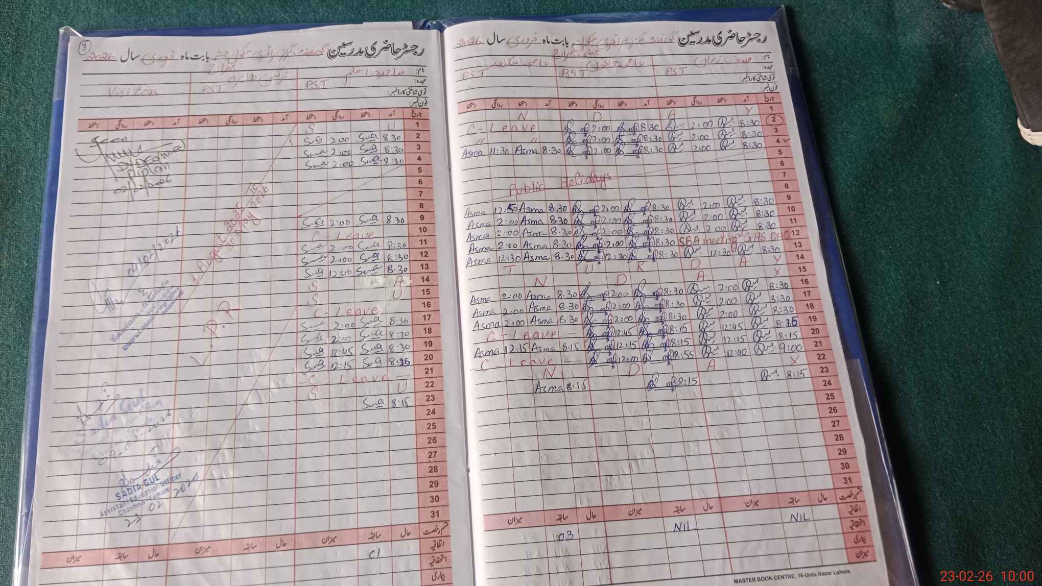 | Leave | Duty | Absent | Maternity | Medical | Ex- Pak |