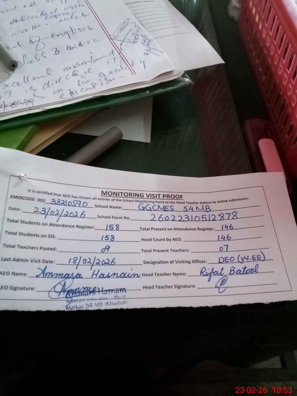| EMIS Code: 38210590 | Name of School: GGCMES CHAK NO. 54/MB | |||