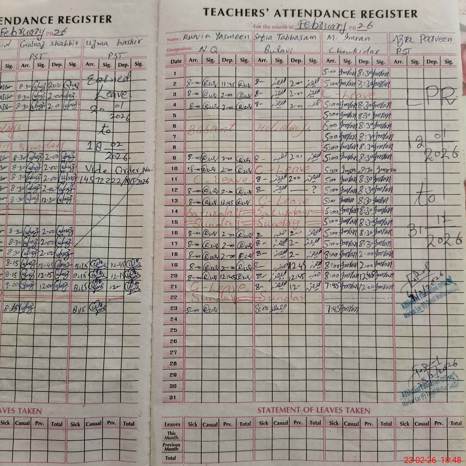 | CNIC | Full Name | Designation | R/C | Absence During Last Calender Month |