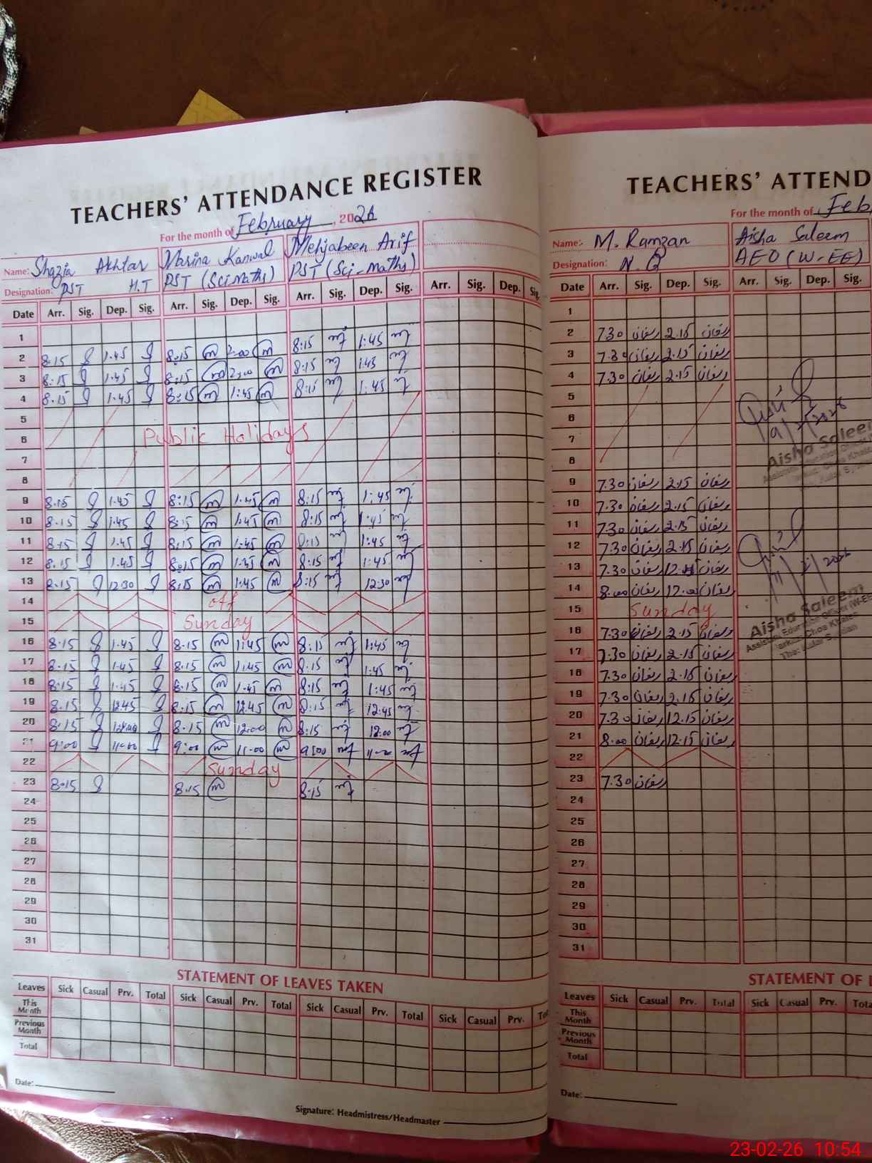 | Attendance Register | Head Teacher | MEA with School | Visit Proof |