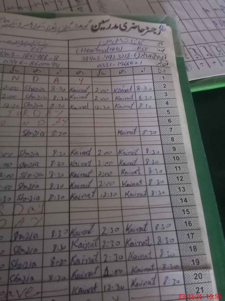 | Name: KA**** AL**** JA**** Designation: (School Headmaster's/Headmistress's) PST Phone/Cell Number: 03**** |