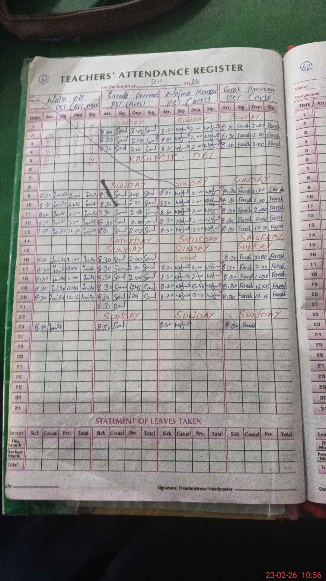 | Attendance Register | Head Teacher | MEA with School | Visit Proof |