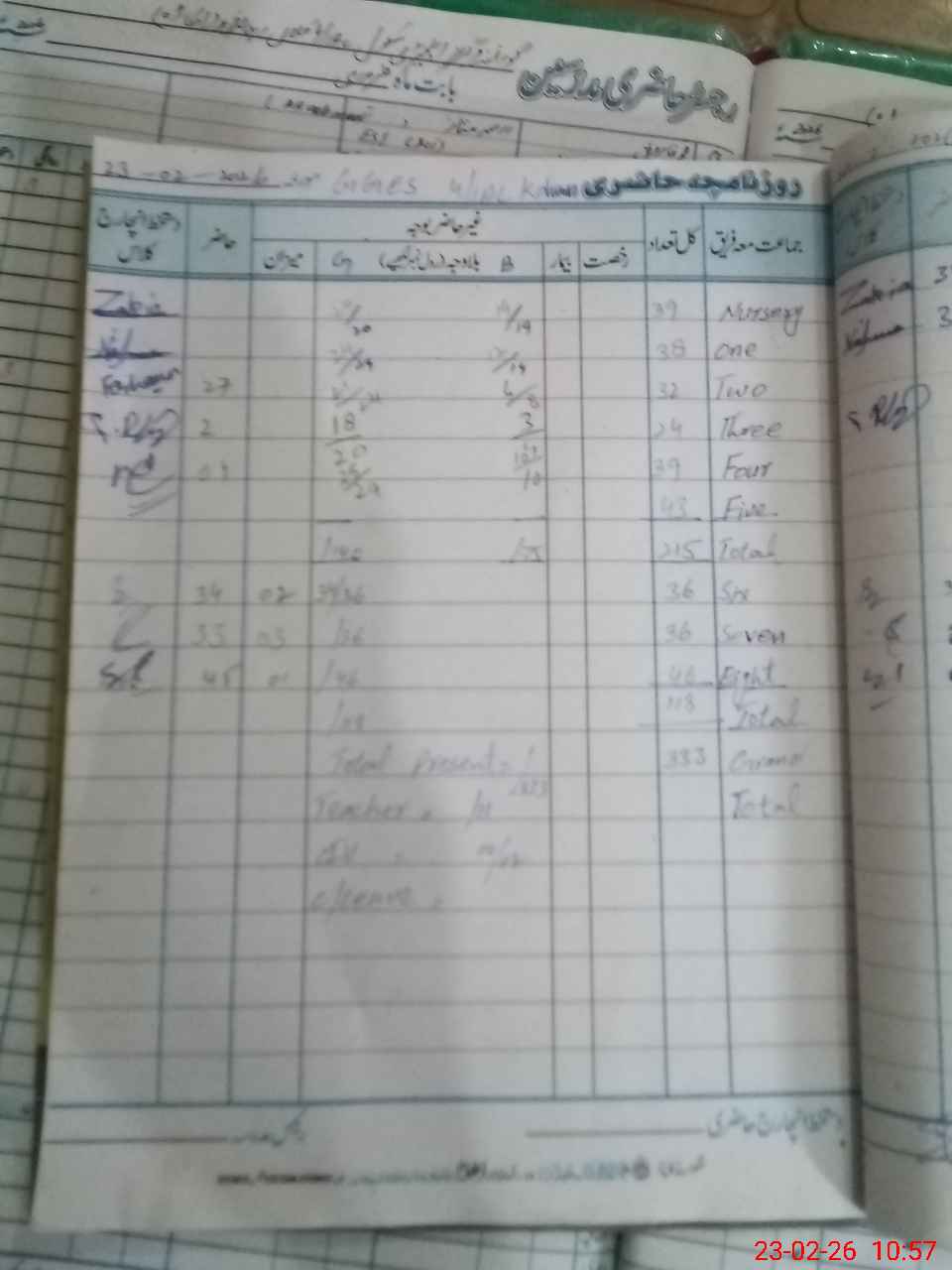 | Total Students Present | 0 | 0 | 38 | 28 | 21 | 35 | 34 | 34 | 33 | 45 | 307 | |||||