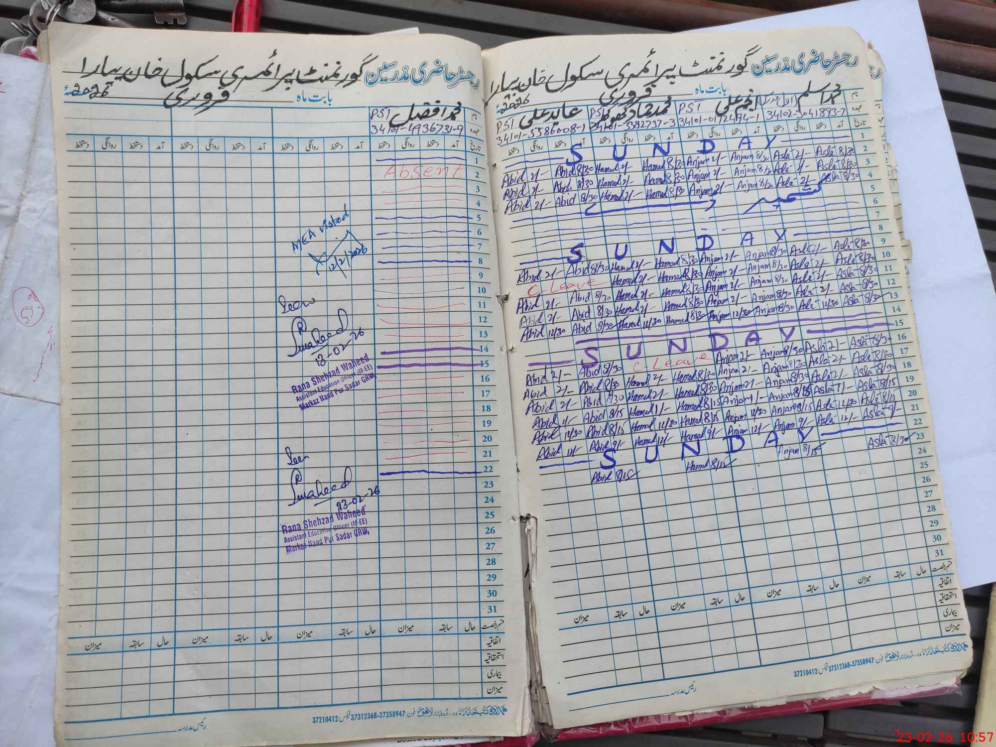 | 34**** | Mu**** Af**** | ESE (Arts) | Contract | 0 | 0 | 0 | 0 | 0 | 0 | 0 | 0 | 0 | Absent (Un-Authorized) |