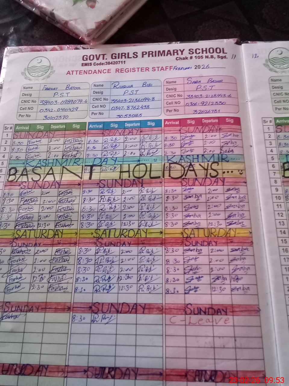 | 38**** | Sa**** Ba**** | PST Science/Maths | Regular | 2 | 0 | 0 | 0 | 2 | 0 | 0 | 0 | 0 | Casual |