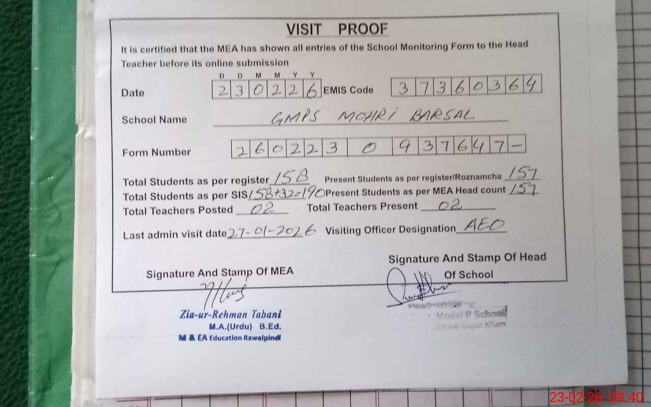 | EMIS Code: 37360364 | Name of School: GPS MODEL MOHRI BARSAL | |||