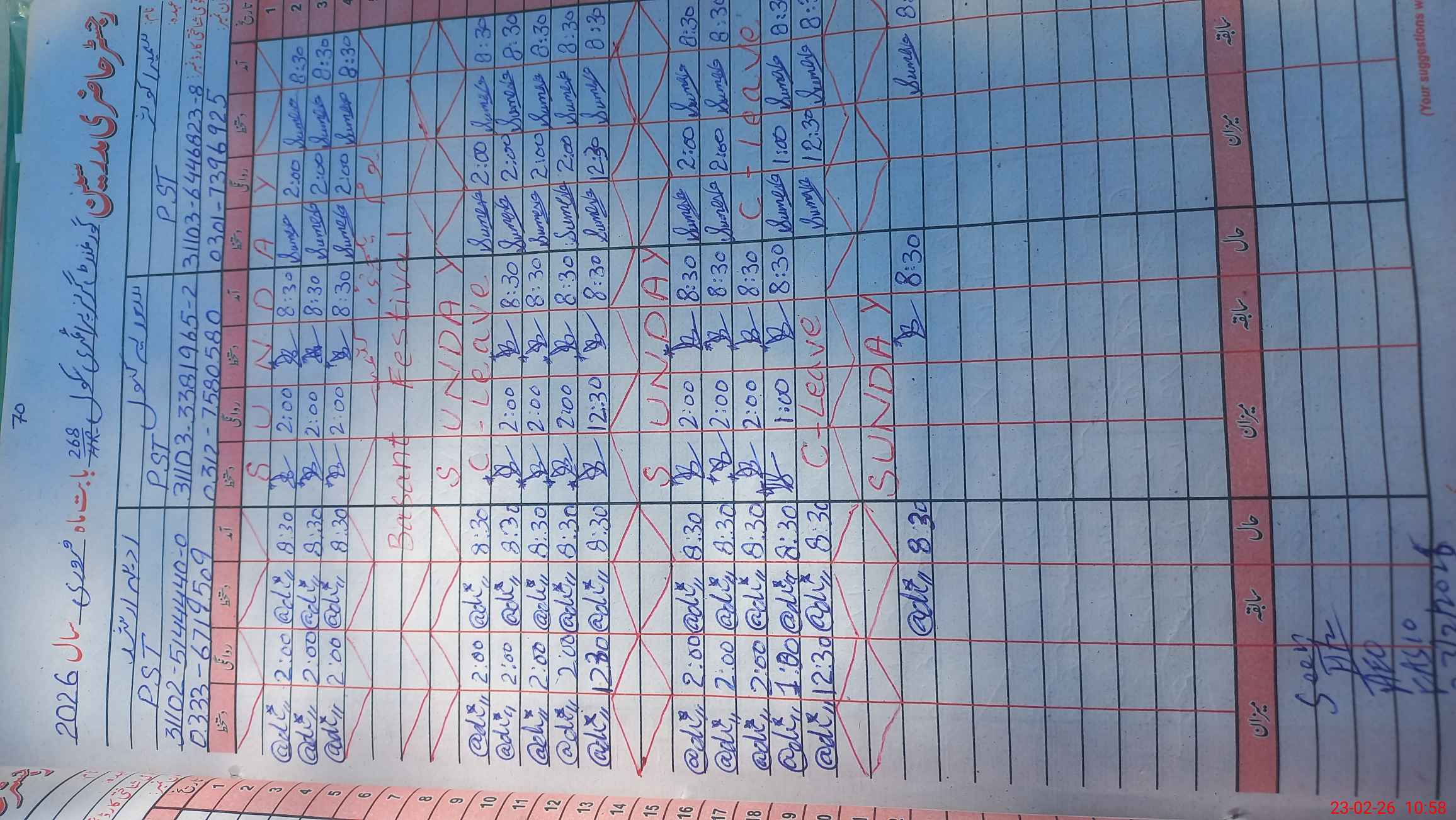 | CNIC | Full Name | Designation | R/C | Absence During Last Calender Month |