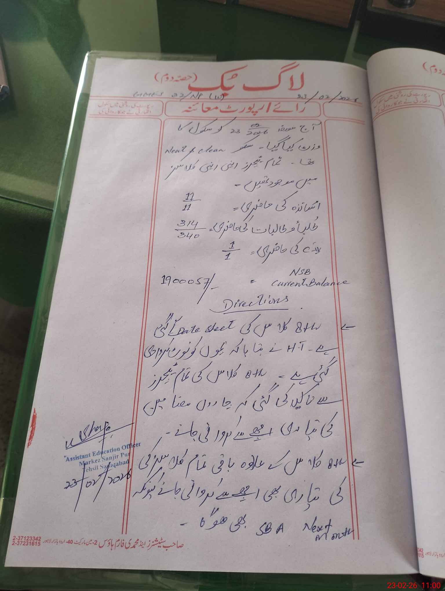 | Name: Sa**** Pa**** Designation: (School Headmaster's/Headmistress's) SST Phone/Cell Number: 03**** |