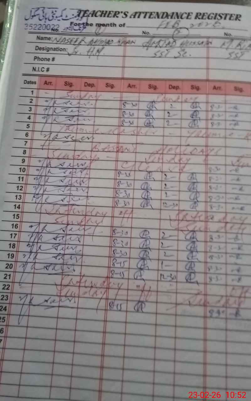 | Name: Na**** Ah**** Kh**** Designation: (School Headmaster's/Headmistress's) Senior Headmaster Phone/Cell Number: 03**** |